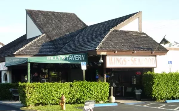 Friendliness and casual comfort define the sports haven Billy's Tavern in Davie. Located on the tail end of a strip mall, Billy's gathers Pittsburgh enthusiasts and football regulars whose hearts pump black and gold blood and whose eyes are glued to the large projection screen on Sundays. But Cleveland Browns and Baltimore Ravens fans don't have to fret, the welcoming environment extends from the customers to the waitresses to the bartenders. The pub only serves beer and wine, in addition to a full menu. But don't come here for the impressive selection of exotic brews or a perfectly blackened grouper. Instead head to Billy's for all the familiar faces during a happy hour that runs 3 to 7 p.m. Monday through Friday, and 1 to 6 p.m. Saturday and Sunday.